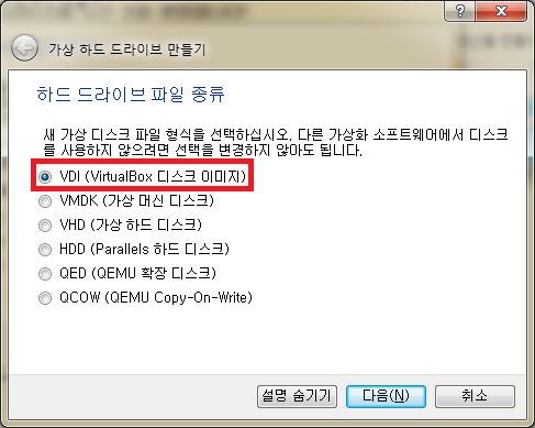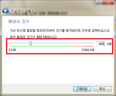 여유 있게 하드 드라이브 용량을 설정 한다.