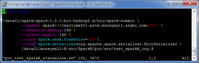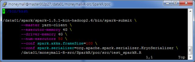 그리고 나면, 아래처럼 Spark Submit 으로 R 코드를 수행 할 수 있다.