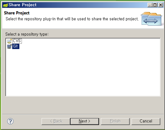 그리고 마지막으로 Eclipse에서 git과 연결을 진행 하면 됩니다.