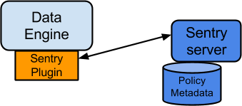 • Data Engine: 메타데이터 리소스나 데이터에 대한 접근 권한을 부여해야할 Hive나 Impala와 같은 데이터 처리 애플리케이션을 의미합니다. 데이터 엔진은 Sentry Plug-in을 로드하고 리소스 접근에 대한 모든 클라이언트 요청은 유효성 검증을 위해 Sentry Plug-in에서 인터셉트되어 라우팅 처리 됩니다.