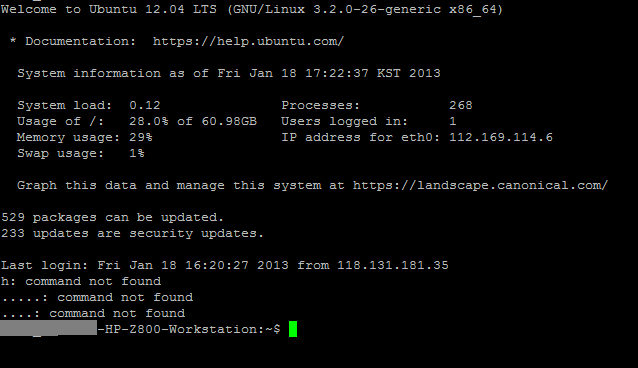 서버에는 Ubuntu 12.04 버전이 설치되어있다.