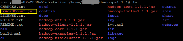 # hadoop jar ExWordCount.jar kr.bigmark.wordcount.WordCount input/ output/ |