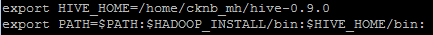 $ ln -s ./hive-0.9.0 hive $ export HIVE_HOME=/usr/local/hduser/hive |