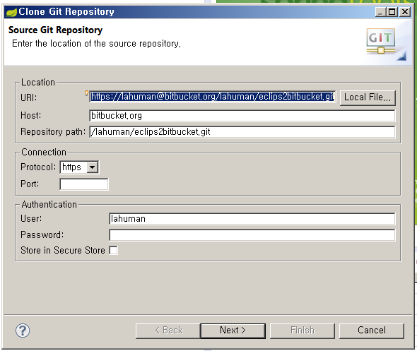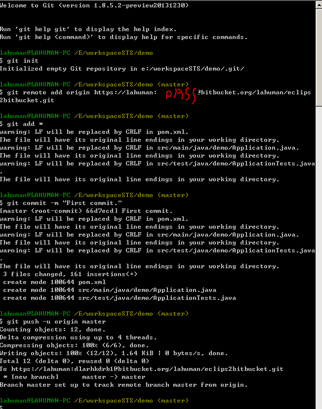 $git remote add origin https://lahuman:패스워드@bitbucket.org/lahuman/eclips2bitbucket.git