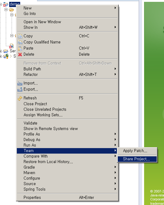 그리고 마지막으로 Eclipse에서 git과 연결을 진행 하면 됩니다.