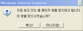 "지금 보고 있는 웹페이지 창을 닫으려고 합니다..." 안나타나게 하기